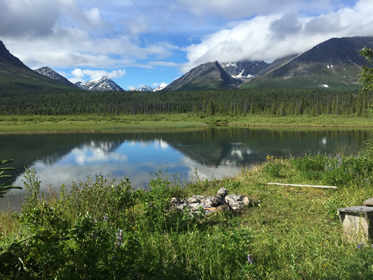 Soak in the alpine scenary in complete solitude. You may spot a moose feeding in the lake or glass Dall Sheep roaming the surrounding 8,000 foot mountain peaks.
